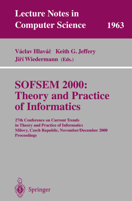 The international conference on current trends in the theory and practice of informatics SOFSEM 2000 was held 25 November-2 December 2000 in the c- ference facilities of the Dev?et Skal (Nine Rocks) Hotel, Milovy, Czech-Moravian Highlands, the Czech Republic. It was already the 27th annual meeting in the series of SOFSEM conferences organized in either the Czech or the Slovak Rep- lic. Since its establishment in 1974, SOFSEM has gone through a long dev- opment in parallel with the entire ?eld of informatics. Currently SOFSEM is a wide-scope, multidisciplinary conference, with stress on the interplay between the theory and practice of informatics. The SOFSEM scienti?c program consists mainly of invited talks which determine the topics of the conference. Invited talks are complemented by short refereed talks contributed by SOFSEM parti- pants. The topics of invited talks are chosen so as to cover the span from theory to practice and to bring interesting research areas to the attention of conf- ence participants. For the year 2000, the following three streams were chosen for presentation by the SOFSEM Steering Committee: - Trends in Algorithmics - Information Technologies in Practice - Computational Perception The above streams were covered through 16 invited talks given by prominent researchers. There were 18 contributed talks also presented, chosen by the int- national Program Committee from among 36 submitted papers. The program also included a panel on lessons learned from the Y2K problem.