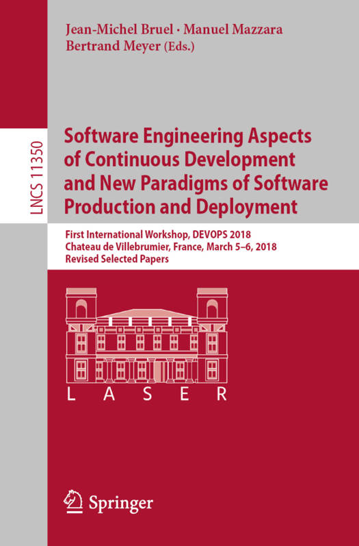 This book constitutes revised selected papers from the First International Workshop on Software Engineering Aspects of Continuous Development and New Paradigms of Software Production and Deployment, DEVOPS 2018, hled at the hateau de Villebrumier, France, in March 2018. The 17 papers presented in this volume were carefully reviewed and selected from 23 submissions. They cover a wide range of problems arising from Devops and related approaches, current tools, rapid development-deployment processes, effects on team performance, analytics, trustworthiness, microservices and related topics.