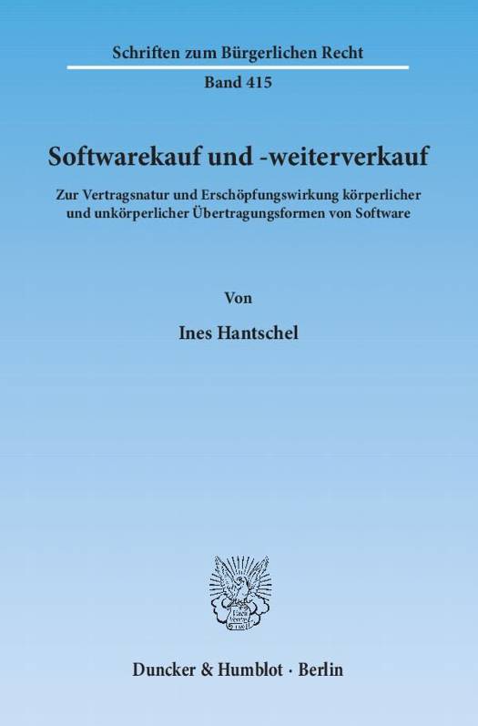 Ines Hantschel untersucht die zunehmende Unabhängigkeit des Softwarehandels von Datenträgern. Sie stellt die Einordnung der endgültigen Softwareüberlassung als Sachkauf in Frage und zeigt, dass sie zwar dem Kaufrecht unterliegt, jedoch bis zu drei Kaufgegenstände zu unterscheiden sind: Software als sonstiger Gegenstand, ein Nutzungsrecht und - nur bei der körperlichen Übertragung der Datenträger - Software als Sache. Aus urheberrechtlicher Sicht wird untersucht, ob auch der Weiterverkauf von Software ohne Zustimmung des Rechtsinhabers zulässig ist, wenn der Erschöpfungstatbestand auf Online-Übertragungen nicht direkt anwendbar ist. Die damit einhergehenden Fragen liegen seit dem Vorlagebeschluss des BGH (Az: I ZR 129/08) dem EuGH vor. Für die Zulässigkeit der Online-Weiterübertragung ist eine Neuregelung erforderlich, die nach dem Vorschlag der Autorin u. a. ein Lizenzregister beinhalten könnte.