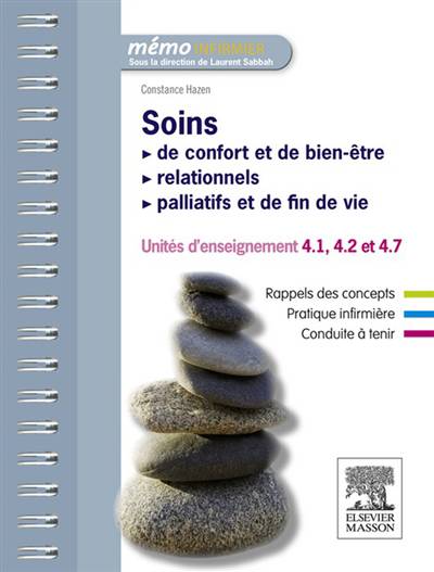 Cet ouvrage est consacre aux unites d'enseignement 4.1, Soins de confort et de bien-etre (semestre 1), 4.2, Soins relationnels (semestres 2, 3 et 5) et 4.7, Soins palliatifs et de fin de vie (semestre 5). Il aborde les grands themes du programme : - les principes de base et valeurs infirmieres ; - les besoins fondamentaux et attentes des patients ; - les soins quotidiens de confort et bien-etre (hygiene, habillage, alimentation, mobilisation, etc.) ; - l'ergonomie dans les soins ; - les concepts de la communication et ses differentes formes ; - les entretiens infirmiers ; - l'alliance therapeutique ; - la distanceprofessionnelle et la gestion dustress au travail ; - les etapes de la fin de vie et du deuil ; - la douleur et son evaluation ; - lessoins et traitements palliatifs; - l'accompagnement des familles et des soignants.