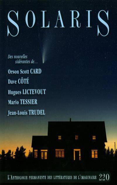 LES FICTIONS : « Le Carrousel » d'Orson Scott Card ; « L'Artisan du déluge » de Dave Côté ; « L'Autre Trame du temps » de Hugues Lictevout ; « Les Cosmos invisibles » de Mario Tessier ; « Le Matin, les arbres et leurs cadeaux » de Jean-Louis Trudel. L'ARTICLE : « Les Cartes du Tendre, ou la géographie imaginaire » de Mario Tessier.