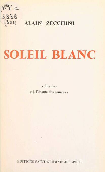 Vertige. Danses premières face au soleil nu, ce tourbillon d’origine, ce globe indescriptible. Soleil, ton soleil. T’appartenant, il dépend de toi comme tu dépends de lui. Mais il évolue sans cesse et sa fréquentation n’est pas aisée. Aussi bien, exiger le soleil, c’est s’y brûler, désespérer de lui, c’est s’annihiler. Loin de lui d’ailleurs, le froid fait ses ruses. Il faut donc apprendre à vivre en équilibre, et lester le mouvement. En ces lieux, au-delà, fondamental, le soleil. Toujours l’on se présente à lui et, par cette action, on avance en soi-même, c’est-à-dire dans le monde qui se meut lui aussi. Ici, le livre de la naissance. « Je fis un feu, l’azur m’ayant abandonné ». Ce vers d’un auteur célèbre pourrait introduire à merveille la quête exigeante d’Alain Zecchini, dont le livre se présente comme, tout à la fois, une gerbe d’étincelles, un surprenant torrent verbal et le témoignage d’un malaise, dans un style assez proche d’une abstraction viscérale.