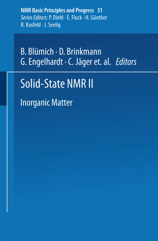 1. G. Engelhardt, H. Koller, Stuttgart, FRG: 29Si NMR of Inorganic Solids 2. H. Pfeifer, Leizpig, FRG: NMR of Solid Surfaces 3. A. Sebald, Bayreuth, FRG: MAS and CP/MAS NMR of Less Common Spin-1/2 Nuclei 4. C. J{ger, Mainz, FRG: Satellite Transition Spectroscopy of Quadrupolar Nuclei 5. D. Brinkmann, M. Mali, Z}rich, CH: NMR-NQR Studies of High-Temperature Superconductors