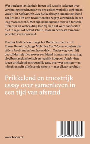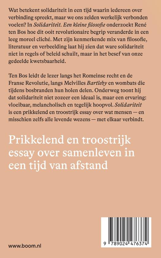 Ten Bos neemt de lezer mee van het Romeinse recht tot de Franse Revolutie, van Melvilles Bartleby tot wombats die tijdens bosbranden hun holen delen. Onderweg toont hij dat solidariteit niet zozeer een ideaal is, maar een ervaring: iets vloeibaars, melancholisch en tegelijk hoopvol.