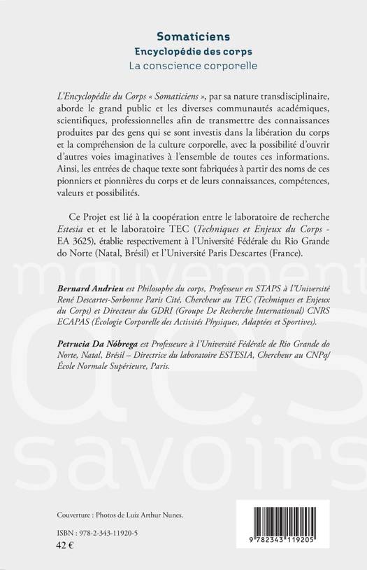 L'Encyclopédie du corps "Somaticiens" vise à transmettre des connaissances produites par des gens qui se sont investis dans la libération du corps et la compréhension de la culture corporelle. Les entrées de la centaine de notices ici publiées sont fabriquées à partir des noms de ces pionniers et pionnières du corps et de leurs connaissances, compétences, valeurs et possibilités.