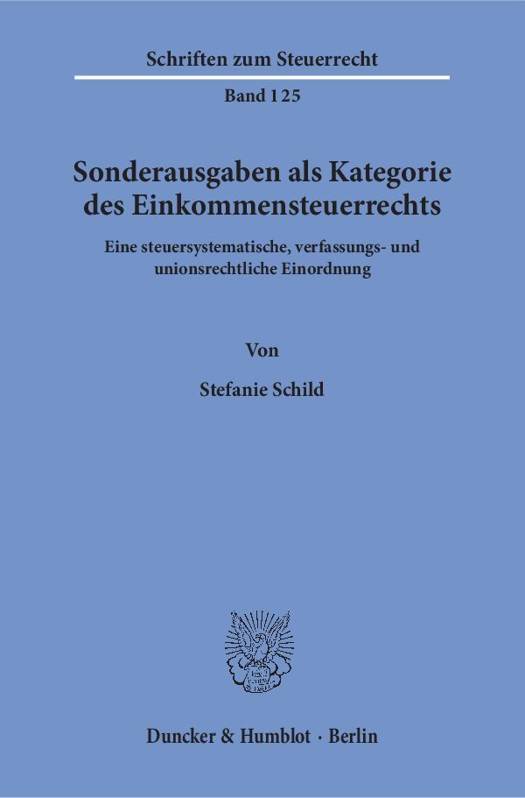 10 ff. EStG) handelt es sich de lege lata um Privataufwendungen. Ein einheitlicher Leitgedanke liegt den einzelnen Tatbeständen allerdings nicht zugrunde. Teils bezweckt der Gesetzgeber die Steuerfreistellung des Existenzminimums, teils verfolgt er außerfiskalische Ziele. Einige Aufwendungen weisen auch einen Bezug zur Erwerbssphäre auf. Diese Gemengelage wirft Fragen auf, weil das Grundgesetz für die Berücksichtigung der verschiedenen Arten von Aufwendungen unterschiedliche Vorgaben enthält. Stefanie Schild untersucht, welche Entscheidungs- und Gestaltungsspielräume dem Gesetzgeber bei der Qualifikation von Aufwendungen als Sonderausgaben - insbesondere auch im Grenzbereich von Erwerbs- und Privatsphäre - und bei der Ausgestaltung der Tatbestände zustehen. Überdies geht sie der Frage nach, inwiefern das Unionsrecht auf die Ausgestaltung des Sonderausgabenabzugs einwirkt.