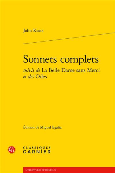 John Keats (1795-1821), malgré sa courte vie, a laissé une oeuvre aussi magistrale que variée dans ses modes d'expression. Parmi ceux-ci, le sonnet aura été un genre poétique dont la brièveté convenait particulièrement à son esprit vif et spontané. Leur ensemble témoigne ainsi, aussi bien dans la forme que dans le contenu, de l'extrême diversité de son génie. Parcourant diverses thématiques : bucolique, politique, sentimentale, métaphysique, etc., ils constituent une sorte de journal accompagnant tous les moments importants de sa vie et de son écriture. Réunis dans leur intégralité, ils sont ici accompagnés de deux autres sommets de la poétique keatsienne, la célèbre ballade La Belle Dame sans Merci et les Odes.