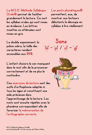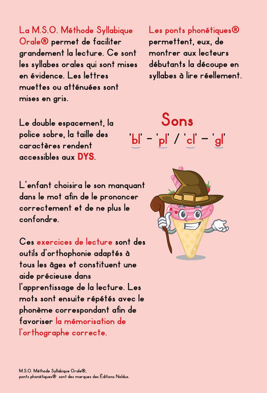 La M.S.O. Méthode Syllabique Orale® permet de faciliter grandement la lecture. Ce sont les syllabes orales qui sont mises en évidence. Les lettres muettes ou atténuées sont mises en gris.