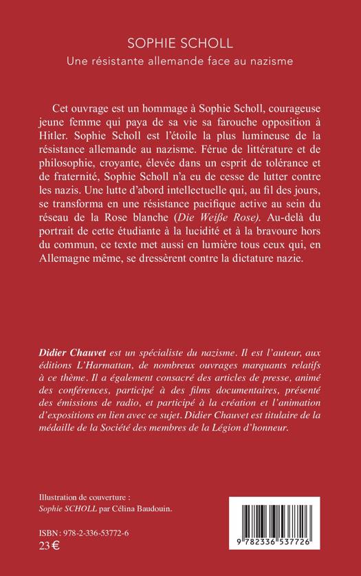Cet ouvrage est un hommage à Sophie Scholl, courageuse jeune femme qui paya de sa vie sa farouche opposition à Hitler. Sophie Scholl est l’étoile la plus lumineuse de la résistance allemande au nazisme. Férue de littérature et de philosophie, croyante, élevée dans un esprit de tolérance et de fraternité, Sophie Scholl n’a eu de cesse de lutter contre les nazis. Une lutte d’abord intellectuelle qui, au fil des jours, se transforma en une résistance pacifique active au sein du réseau de la Rose blanche (Die Weiße Rose). Au-delà du portrait de cette étudiante à la lucidité et à la bravoure hors du commun, ce texte met aussi en lumière tous ceux qui, en Allemagne même, se dressèrent contre la dictature nazie.