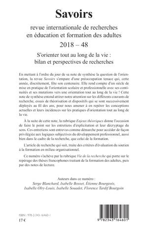 En mettant à l'ordre du jour de sa note de synthèse la question de l'orientation, la revue Savoirs s'empare d'une préoccupation tenace qui, cette année, discrètement, fête son centenaire. Elle rend compte d'un siècle de mise en pratique de l'orientation scolaire et professionnelle avec ses continuités et ses mutations vers une orientation tout au long de la vie ! Cette note de synthèse entend attirer notre attention sur les différents courants de recherche, essais de théorisation et dispositifs qui se sont successivement déployés au fil des ans, pour nous amener à en repérer les conceptions actuelles et leurs incidences sur les pratiques d'orientation tout au long de la vie.