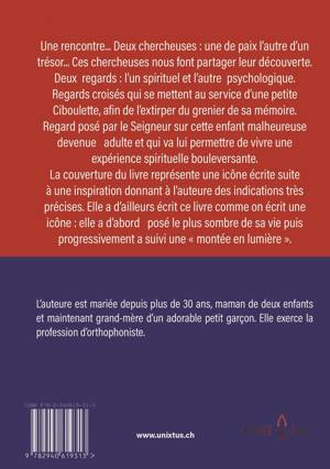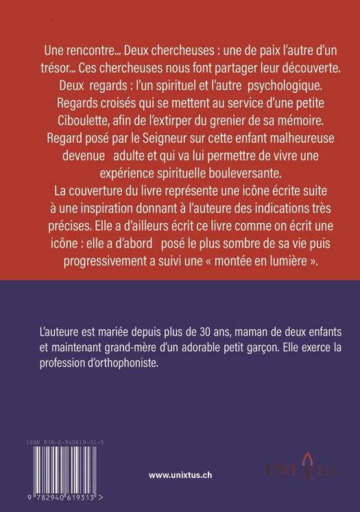Dominique fait récit de sa vie. D'une enfance malheureuse à l'adulte cabossée, mais voulant guérir. Elle se laisse accompagner par un religieux et dans le même temps par une psychologue. Dans son livre, l'auteure nous invite à la suivre au travers de deux regards croisés : celui de la petite Ciboulette qui recherche un trésor et celui de Dominique adulte qui recherche la Paix. Elle va pouvoir se réconcilier avec son prénom.