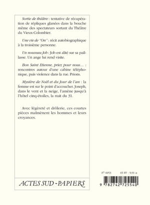 Avec légèreté et drôlerie, ces courtes pièces malmènent les hommes et leurs croyances.