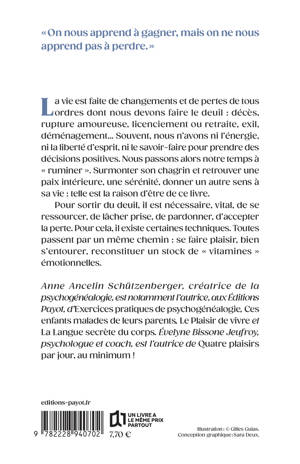 La vie est faite de changements et de pertes de tous ordres dont nous devons faire le deuil : décès, rupture amoureuse, licenciement ou retraite, exil, déménagement... Souvent, nous n'avons ni l'énergie, ni la liberté d'esprit, ni le savoir-faire pour prendre des décisions positives. Nous passons alors notre temps à "ruminer". Surmonter son chagrin et retrouver une paix intérieure, une sérénité, donner un autre sens à sa vie : telle est la raison d'être de ce livre. Pour sortir du deuil, il est nécessaire, vital, de se ressourcer, de lâcher prise, de pardonner, d'accepter la perte. Pour cela, il existe certaines techniques. Toutes passent par un même chemin : se faire plaisir, bien s'entourer, reconstituer un stock de "vitamines" émotionnelles.