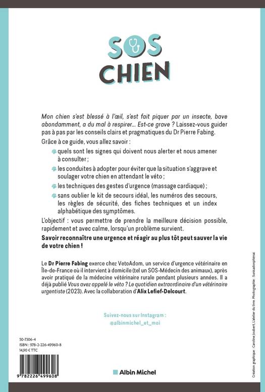 Le Dr Pierre Fabing exerce chez VetoAdom, un service d'urgence vétérinaire en Île-de-France où il intervient à domicile (tel un SOS-Médecin des animaux), après avoir pratiqué de la médecine vétérinaire rurale pendant plusieurs années. Il a déjà publié Vous avez appelé le véto ? Le quotidien extraordinaire d'un vétérinaire urgentiste (2023).