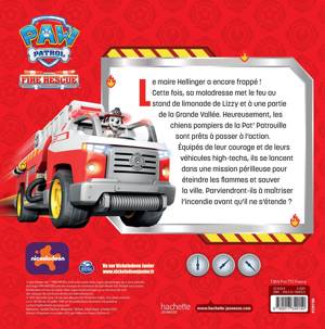 Le maire Hellinger a encore frappé ! Cette fois, sa maladresse met le feu au stand de limonade de Lizzy et à une partie de la Grande Vallée. Heureusement, les chiens pompiers de la Pat’ Patrouille sont prêts à passer à l’action. Équipés de leur courage et de leurs véhicules high-techs, ils se lancent dans une mission périlleuse pour éteindre les flammes et sauver la ville. Parviendront-ils à maîtriser l’incendie avant qu’il ne s’étende ?