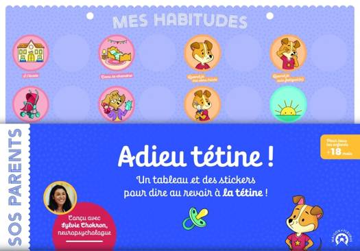 Au recto, un tableau des habitudes pour visualiser tous les moments où votre enfant a l'habitude de prendre sa tétine. Au verso, un tableau d'objectifs et un semainier pour suivre ses progrès jour après jour grâce aux stickers électrostatiques. Retrouvez les conseils de Sylvie Chokron, neuropsychologue, dans un livret explicatif et dans un podcast exclusif.