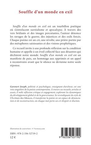 Souffle d'un monde en exil est un tourbillon poétique où s'entrelacent surréalisme et apocalypse. À travers des vers brûlants et des images percutantes, l'auteur dénonce les ravages de la guerre, des injustices et des exils forcés. Chaque poème est un cri, une révolte, une prière portée par des métaphores saisissantes et des visions prophétiques. Ce recueil invite à une profonde réflexion sur la condition humaine et appelle à un éveil collectif face aux désastres qui déchirent notre monde. Souffle d'un monde en exil est un manifeste de paix, un hommage aux opprimés et un appel à reconstruire avant que le silence ne devienne notre seule réponse.