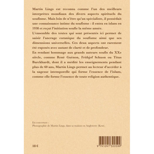 Martin Lings est reconnu comme l’un des meilleurs interprètes mondiaux des divers aspects spirituels du soufisme. Mais loin de n’être qu’un spécialiste, il possédait une connaissance intime du soufisme : il entra en islam en 1938 et reçut l’initiation soufie la même année. L’ensemble des textes qui sont présentés ici permet de saisir l’ancrage coranique du soufisme ainsi que ses dimensions universelles. Ces deux aspects ont rarement été exposés avec autant de clarté et de profondeur. En rendant hommage aux grands auteurs soufis du XXe siècle, comme René Guénon, Frithjof Schuon ou Titus Burckhardt, dont il a médité les enseignements pendant plus de 60 ans, Martin Lings permet au lecteur d’accéder à la sagesse intemporelle qui forme l’essence de l’islam, comme elle forme l’essence de toute religion authentique.