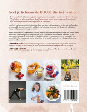 Alles is gebaseerd op de vijf elementen, waardoor je met de seizoenen mee beweegt én kookt. Per seizoen komen er specifieke ingrediënten en oefeningen aan bod om de kwaaltjes van het seizoen aan te kunnen. Bij het waterelement komen zo de winterkeuken en -kwaaltjes aan bod en zorgen de recepten en bewegingen voor meer vitaliteit. Het boomelement staat in verband met de zuiverende lentekeuken en oefeningen die de voorjaarsvermoeidheid bannen.