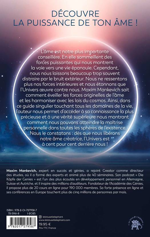 Maxim Mankevich sait comment éveiller les forces originelles de l’âme et les harmoniser avec les lois du cosmos. Ainsi, dans ce guide singulier touchant tous les domaines de la vie, l’auteur nous permet d’accéder à sa connaissance la plus précieuse et à une vérité supérieure nous montrant comment nous pouvons atteindre la maîtrise personnelle dans toutes les sphères de l’existence.