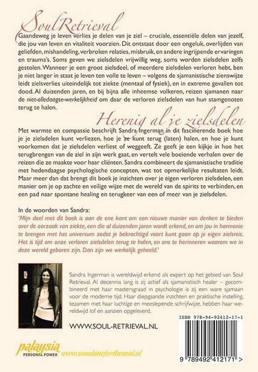 Met warmte en compassie beschrijft Sandra Ingerman in dit fascinerende boek hoe je je zielsdelen kunt verliezen, hoe je ze kunt terug (laten) halen, en hoe je kunt voorkomen dat je zielsdelen verliest of weggeeft. Ze geeft je een kijkje in hoe het terugbrengen van de ziel in zijn werk gaat, en vertelt vele boeiende verhalen over de reizen die ze maakte voor haar cliënten. Sandra combineert de sjamanistische traditie met hedendaagse psychologische concepten, wat tot opmerkelijke resultaten leidt. Maar meer dan dat brengt dit boek je inzichten over je eigen verloren zielsdelen, een manier om je op zachte en veilige wijze met de wereld van de spirits te verbinden, en een pad naar spontane healing en terugkeer van een of meer van je zielsdelen.