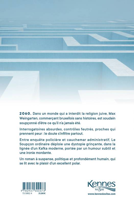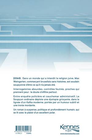 2060. Pour mettre fin aux conflits, le monde a pris une décision radicale : interdire la religion juive. Officiellement, elle n’existe plus. À Bruxelles, Max Weingarten mène une vie tranquille de commerçant respecté. Jusqu’au jour où la police s’intéresse à lui. Sans accusation précise, sans preuve tangible, mais avec une question obsédante : qui est-il vraiment ?