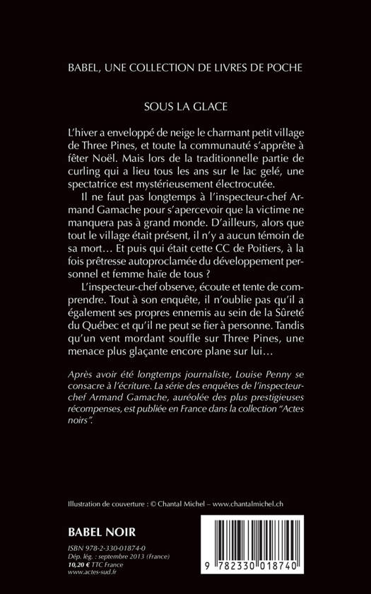 Lorsque l'inspecteur-chef Armand Gamache est chargé d'enquêter sur un nouveau meurtre survenu au sein de la petite communauté de Three Pines, il ne lui faut pas longtemps pour comprendre que la victime ne manquera à personne. D'ailleurs, personne ne l'a vue se faire électrocuter en plein milieu d'un lac gelé lors d'une compétition de curling. Pourtant, il y a forcément eu des témoins... Un deuxième roman qui confirme que Louise Penny est l'héritière naturelle d'Agatha Christie.