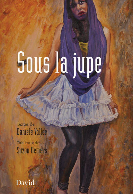 Né du désir de l’auteure Danièle Vallée et de l’artiste visuelle Suzon Demers de réaliser un projet ensemble, Sous la jupe est un livre qui veut susciter un double plaisir, littéraire et visuel. S’inspirant de quatorze peintures de Suzon Demers ayant pour sujet des personnages féminins, Danièle Vallée s’est amusée à écrire quatorze nouvelles donnant vie à ces personnages. Fidèle à ses publications antérieures (Debout sur la tête d'un chat, Le D2ux), elle nous offre des textes incisifs et drôles qui créent un très bel écho aux toiles colorées de sa complice.