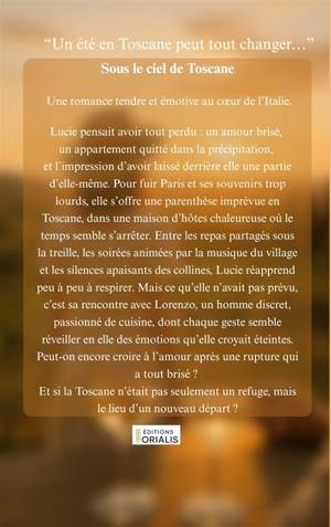 Lucie pensait avoir tout perdu: un amour brisé, un appartement quitté dans la précipitation, et l'impression d'avoir laissé derrière elle une partie d'elle-même. Pour fuir Paris et ses souvenirs trop lourds, elle s'offre une parenthèse imprévue en Toscane, dans une maison d'hôtes chaleureuse où le temps semble s'arrêter.