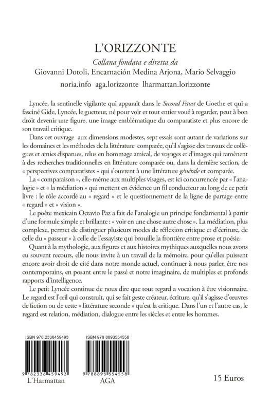 Lyncée, la sentinelle vigilante qui apparaît dans le Second Faust de Goethe et qui a fasciné Gide, le guetteur, né pour voir et tout entier voué à regarder, peut à bon droit devenir une figure, une image emblématique du comparatiste et plus encore de son travail critique. Dans cet ouvrage aux dimensions modestes, sept essais sont autant de variations sur les domaines et les méthodes de la littérature comparée, qu’il s’agisse des travaux de collègues et amies disparues, relus en hommage amical, de voyages et d’images qui ramènent à des recherche traditionnelles en littérature comparée ou, dans la dernière section, de « perspectives comparatistes » qui s’ouvrent à une littérature générale et comparée. La « comparaison », elle-même aux multiples visages, est ici concurrencée par « l’analogie » et « la médiation » qui mettent en évidence un fil conducteur au long de ce petit livre : le rôle accordé au « regard » et le questionnement de la ligne de partage entre « regard » et « vision ». Le poète mexicain Octavio Paz a fait de l’analogie un principe fondamental à partir d’une formule simple et brillante : « voir en une chose autre chose ». La médiation, plus complexe, permet de distinguer plusieurs modes de réflexion critique et d’écriture, de celle du « passeur » à celle de l’essayiste qui brouille la frontière entre prose et poésie. Quant à la mythologie, aux figures et aux histoires mythiques auxquelles nous avons eu souvent recours, elle nous invite à un travail de la mémoire, pour qu’elles puissent encore avoir droit de cité dans notre monde actuel, continuer à nous parler, être nos contemporains, en posant entre le passé et notre imaginaire, de multiples et profonds rapports d’intelligence. Le petit Lyncée continue de nous dire que tout regard a vocation à être visionnaire. Le regard est l’œil qui construit, qui se fait geste créateur, écriture, qu’il s’agisse d’œuvres de fiction ou de cette « littérature seconde » qu’est la critique. Dans l’un et l’autre cas, le regard est relation, médiation, dialogue entre les siècles et entre les hommes.