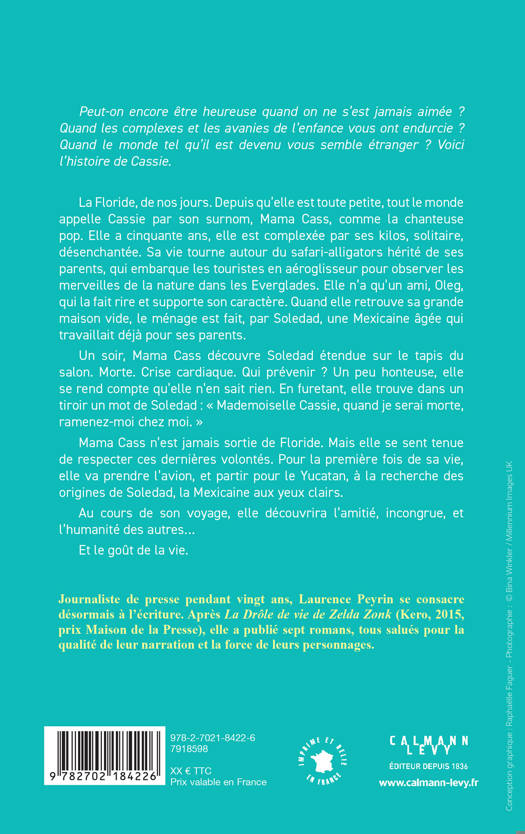 La Floride, de nos jours. Depuis qu’elle est toute petite, tout le monde appelle Cassie par son surnom, Mama Cass, comme la chanteuse pop. Elle a cinquante ans, elle est complexée par ses kilos, solitaire, désenchantée. Sa vie tourne autour du safari-alligators hérité de ses parents, qui embarque les touristes en aéroglisseur pour observer les merveilles de la nature dans les Everglades. Elle n’a qu’un ami, Oleg, qui la fait rire et supporte son caractère. Quand elle retrouve sa grande maison vide, le ménage est fait, par Soledad, une Mexicaine âgée qui