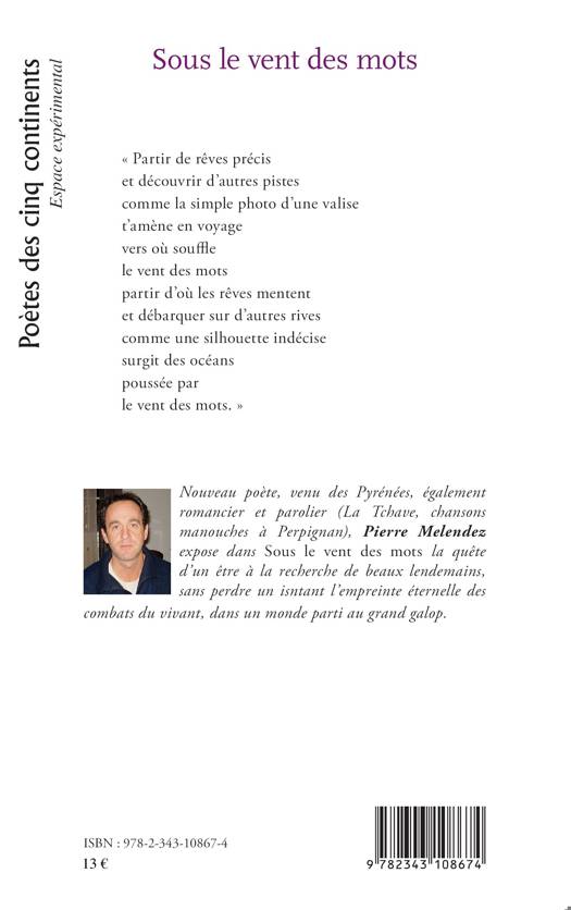 « Partir de rêves précis et découvrir d'autres pistes comme la simple photo d'une valise t'amène en voyage vers où souffle le vent des mots partir d'où les rêves mentent et débarquer sur d'autres rives comme une silhouette indécise surgit des océans poussée par le vent des mot. »