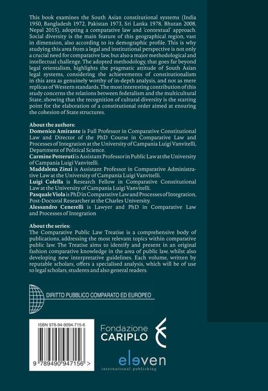 This book examines the South Asian constitutional systems (India 1950, Bangladesh 1972, Pakistan 1973, Sri Lanka 1978, Bhutan 2008, Nepal 2015), adopting a comparative law and 'contextual' approach. Social diversity is the main feature of this geographical region, vast in dimension, also according to its demographic profile. This is why studying this area from a legal and institutional perspective is not only a crucial need for comparative law, but also a major methodological and intellectual challenge. The adopted methodology, that goes far beyond legal orientalism, highlights the pragmatic attitude of South Asian legal systems, considering the achievements of constitutionalism in this area as genuinely worthy of in-depth analysis, and not as mere replicas of Western standards. The most interesting contribution of this study concerns the relations between federalism and the multicultural State, showing that the recognition of cultural diversity is the starting point for the elaboration of a constitutional order aimed at ensuring the cohesion of State structures.