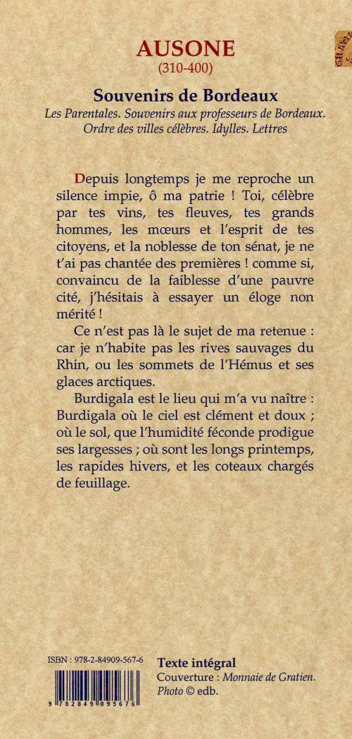 Burdigala où le ciel est clément et doux ;