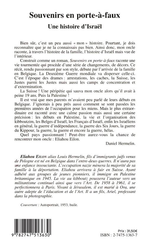 L'auteur raconte, à travers l'histoire de sa famille, l'histoire d'Israël mais vue de l'intérieur. Ce récit, rendu passionnant par son style, débute par l'arrivée de la famille en Belgique. La deuxième guerre mondiale va disperser celle-ci. C'est l'époque des drames : arrestations, les caches, la Suisse, les Justes parmi les Justes mais aussi les camps de concentration et d'extermination. Puis la Palestine ! Eliahou Eilon raconte avec une calme passion les débuts en Palestine, la vie et l'organisation des Kibboutzim, les Belges d'Israël, les français d'Israël, Les israéliens en général, la guerre d'indépendance, la guerre des Six Jours, la guerre de Kippour, la guerre et encore la guerre là-bas.