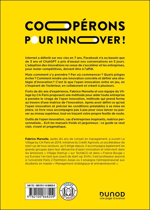 Forts de dix ans d’expérience, Fabrice Marsella et son équipe du Village by CA Paris proposent une méthode pour aider toute entreprise à prendre le virage de l’open innovation, méthode qui prend forme au travers d’une matrice de l’innovation. Après avoir défini ce qu’est l’open innovation et précisé les conditions préalables à sa mise en place, ce livre vous accompagne pas à pas pour vous lancer ou passer au niveau supérieur, tout en traçant votre propre feuille de route.