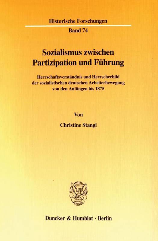 Christine Stangl erfaßt und analysiert in dem vorliegenden Werk in systematischer Weise die diesbezüglichen Vorstellungen vom Beginn des 19. Jahrhunderts bis zum Vereinigungsparteitag in Gotha 1875. Hierbei wird einerseits danach gefragt, wie die führenden sozialistischen Theoretiker die Herrschaft strukturieren wollten und wie die geäußerten Vorstellungen mit der Organisationsstruktur der sozialistischen Vereine und Parteien korrespondierten. Die Bandbreite der Herrschaftsvorstellungen, die sich im Spektrum zwischen Partizipation und Führung bewegen, reicht von anarchistischen Ideen bis hin zur Diktatur einer Person. Zum anderen steht die Frage im Zentrum, welches Herrscherbild favorisiert wurde. In bezug auf die eigenen Führungspersönlichkeiten kamen hierbei Ferdinand Lassalle und August Bebel eine hervorgehobene Bedeutung zu, was sich besonders in der Arbeiterkultur manifestierte.