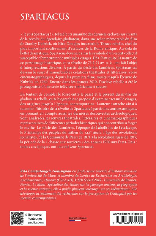 En tentant de combler le fossé entre le passé et le présent du mythe du gladiateur rebelle, cette biographie se propose d’examiner ses mille visages, des origines jusqu’à l’époque contemporaine. L’auteur s’attache ainsi à raconter l’histoire de la révolte de Spartacus à partir des sources antiques, en prenant en compte aussi les dernières découvertes archéologiques. Sont analysées les œuvres théâtrales, littéraires et cinématographiques représentatives de différentes périodes historiques qui ont contribué à forger le mythe. Le siècle des Lumières, l’époque de l’abolition de l’esclavage, le « printemps des peuples » du milieu du XIXe siècle, l’âge des révolutions socialistes, de la Commune de Paris de 1871 à la révolution russe de 1917, la période de la « chasse aux sorcières » des années 1950 aux Etats-Unis : toutes ces époques ont raconté leur Spartacus.