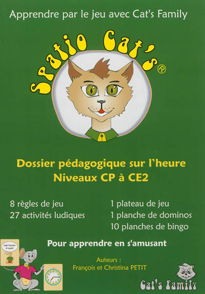 8 règles de jeu : la règle principale (les Défis), le bingo de l'heure (10 planches), les dominos (35 dominos), MémoCats, TriCats, le Misty, la bataille, La course au trésor (1 plateau de jeu en couleur).