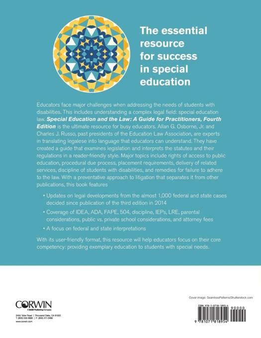 Educators face major challenges when addressing the needs of students with disabilities. This includes understanding special education law. The authors, past presidents of the Educational Law Association and experts in translating legalese, have created a resource that examines legislation and interprets the statutes and their regulations in a reader-friendly format. With a preventative approach to litigation, this book features