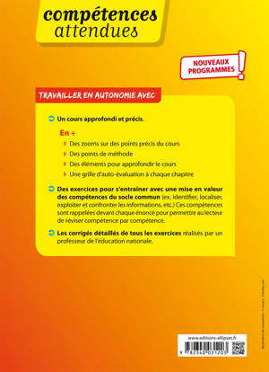 Conforme à la réforme du Bac 2021. Travailler en autonomie avec un cours approfondi (en + le vocabulaire à connaître ; les concepts logique à maîtriser) ; des exercices classés par compétences attendues avec une mise en valeur des grandes compétences du socle commun (ex. chercher, analyser, représenter, etc.) et les corrigés détaillés de tous les sujets avec les conseils des auteurs, professeurs de lycée.