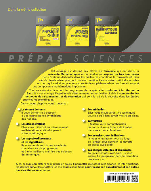 Tout en suivant strictement le programme de la spécialité, conforme à la réforme du Bac 2021, cet ouvrage l'appréhende différemment, en particulier, il aide à comprendre les méthodes de raisonnement et de résolution qui sont la clé de la réussite dans les études supérieures scientifiques.