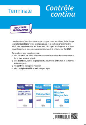 La collection Contrôle continu a été conçue pour les élèves de lycée qui souhaitent améliorer leurs connaissances et la pratique d'une matière.