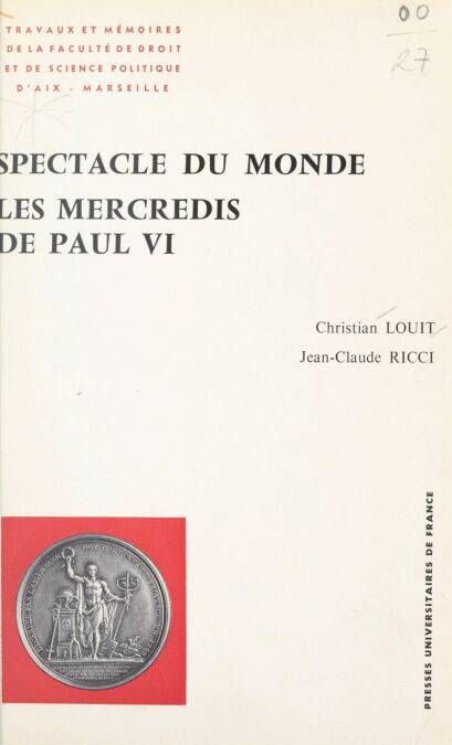Dans le cadre des travaux et mémoires publiés en 1974 par la Faculté de droit et de science politique d'Aix-Marseille, Christian Louit et Jean-Claude Ricci signent un ouvrage avec un double sujet : tout d'abord la revue "Spectacle du Monde" : équipe, dirigeants, lectorat, contenus, tendances politiques, etc. ; puis, les "Mercredis de Paul VI" afin de déterminer quelle fonction le Pape Paul VI assigne à cette institution.