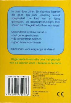 In deze doos zitten 50 kleurrijke kaarten die goed zijn voor urenlang leerrijk spelplezier! Uw kind kan er leuke geheugen- en observatiespelletjes mee spelen en zal tegelijkertijd heel wat leren! Spelenderwijs zal uw kind dus: - het geheugen trainen - de concentratie oefenen - goed leren waarnemen Onmisbaar voor leergierige kinderen!