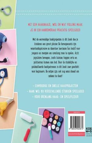 Met de eenvoudige projecten in Speelgoed haken van Sarah Powlowski doe je kinderen een groot plezier. De beroepensets zijn waarheidsgetrouw en daardoor leerzaam (en leuk) voor jongens en meisjes om urenlang mee te spelen. Aan bod komen 8 populaire beroepen, zoals tuinier, kapper, arts en politieman. Door de duidelijke en gedetailleerde haakpatronen is dit boek zeer geschikt voor beginners. De setjes zijn ideaal om cadeau te doen.