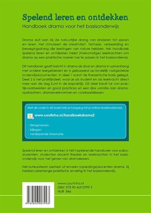 Drama sluit aan bij de natuurlijke drang van kinderen tot spelen en leren. Het stimuleert de creativiteit, fantasie, verbeelding en bewegingsdrang die leerlingen van nature hebben. Het handboek Spelend leren en ontdekken helpt (toekomstige) leerkrachten om drama op een praktische manier toe te passen in het basisonderwijs.