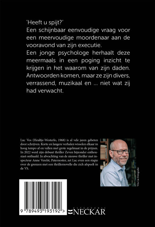 'Heeft u spijt?’ Een schijnbaar eenvoudige vraag voor een meervoudige moordenaar aan de vooravond van zijn executie. Een jonge psychologe herhaalt deze meermaals in een poging inzicht te krijgen in het waarom van zijn daden. Antwoorden komen, maar ze zijn divers, verrassend, muzikaal en … niet wat zij had verwacht.