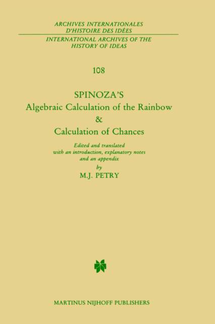 A. THE TEXT The main importance of these two treatises lies in the insight they provide into Spinoza's conception of the relation between mathematics and certain disciplines not touched upon elsewhere in his major writings. The mathematics they involve are not the as those of the Ethics however, and the precise connection same between the geometrical order of this work and these excursions into optics and probability is by no means obvious. Add to this difficulty the knotty problems presented by their editorial his- tory, dating and scientific background, and it is not perhaps surprising that in spite of the fact that they provide such an excellent illustration of Spinoza's reaction to certain important developments in the history of physics and mathematics, they should not, so far, have attracted much attention. They were first published in 1687 by Levyn van Dyck (d. 1695), official printer to the town council in The Hague. Printing anything by Spinoza was not without its risks, and it is probably significant that during the same year van Dyck should also have published a lengthy and elaborate refutation of Spinozism by 1 the pious and eccentric physician ]. F. Helvetius. Spinoza's name was omitted from the title-page, possibly because the editor or publisher thought that his reputation as an atheist might prejudice the sale of the booklet, and it was not until 1860 that the Amsterdam bookseller Frederik Muller (1817-1881) identified him as its author.