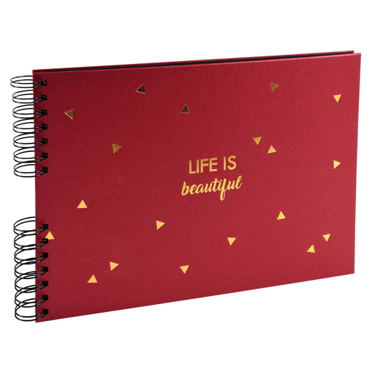 Fotoalbum spiraalgebonden - 50 zwarte bladzijden - 32x22 cm - LIFE Trendy fotoalbum om de mooiste herinneringen te bewaren. De goudmarkering met eenvoudige motieven en pakkende slogan's geven een mod erne toets aan een klassiek album. Het spiraalalbum van 32 x 22 cm is een praktisch en esthetisch formaat, vooral om vergrotingen te presenteren. Met zijn hoogwaardige papier in 250 g / m2 kan dit album of notitieblok, worden gebruikt om foto's te plakken, maar ook om aantekeningen te maken en boodschappen te illustreren. Dit product wordt voor 100% vervaardigd in onze fabrieken in Frankrijk. Verpakt in een doorzichtige doos. CAPACITEIT: 200 foto's. Formaat 22,5x22 cm. 100 pagina's.
